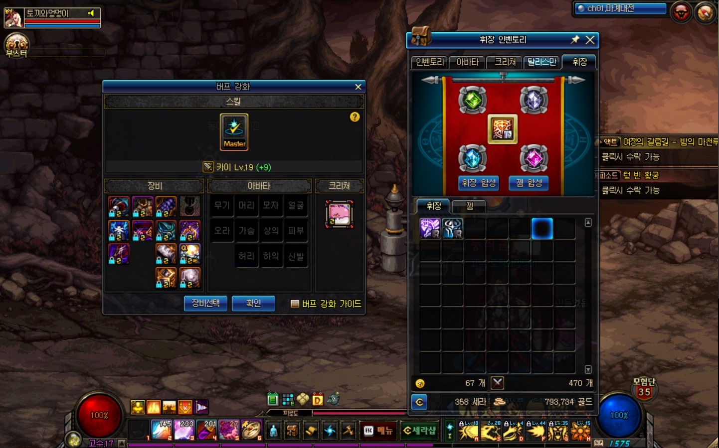 버프스위칭은 대부분 크로니클+@ 세팅에 특수장비만 최신!